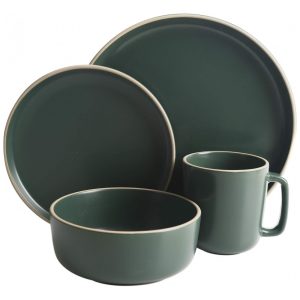 Aparelho de Jantar 16 Peças em Cerâmica com Relevo Gibson Home Dinah Verde Sálvia