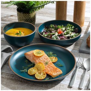 Aparelho de Jantar com 12 Peças em Melamina Gibson Home Rockabye Azul Petróleo Fosco