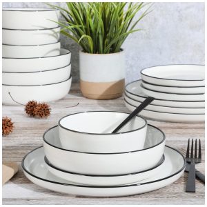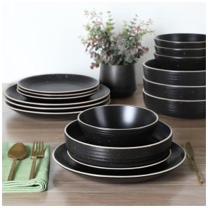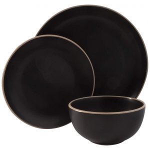 Aparelho de Jantar com 12 Peças em Cerâmica Serve 4 Pessoas Gibson Home Rockaway Preto