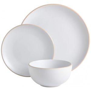 Aparelho de Jantar com 12 Peças em Cerâmica Serve 4 Pessoas Gibson Home Rockaway Creme