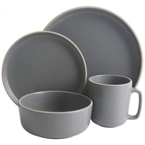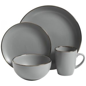Aparelho de Jantar com 16 Peças em Cerâmica Stoneware Serve 4 Pessoas Gibson Home Rockaway Cinza