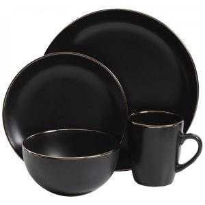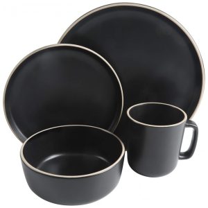 Aparelho de Jantar com 16 Peças em Cerâmica Stoneware Serve 4 Pessoas Gibson Home Rockaway Preto