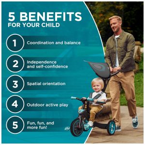 Globber 527 106 Triciclo Infantil para Passeio com Assento Ajustável 4 Estágios Idade Recomendada 2 a 5 Anos Azul