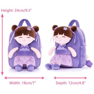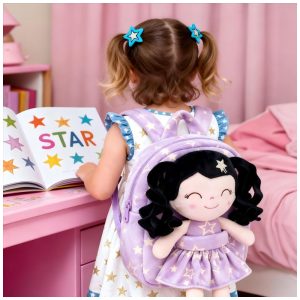 Mochila infantil Gloveleya boneca primavera cabelo cacheado roxa