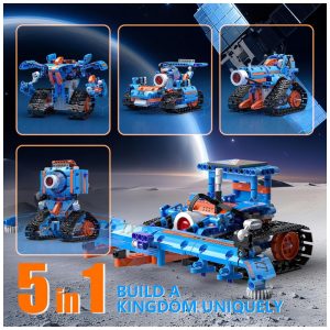 Kit de robô STEM 5 em 1 GLSQWZXD com controle remoto e app 337 peças azul e preto