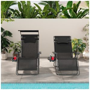 Cadeira Reclinável Ajustável Gravidade Zero com Porta Copos e Cobertura Goplus Azul