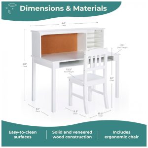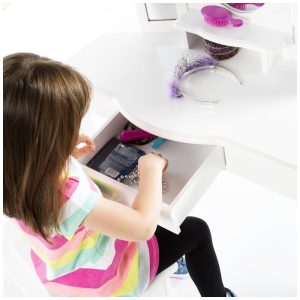 Penteadeira infantil Guidecraft Classic White Vanity branca com espelho triplo e banqueta em madeira