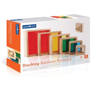 Blocos de Empilhar Pirâmide Arco-Íris Infantil Guidecraft em madeira com janelas acrílicas coloridas
