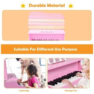 Piano de Cauda Infantil com 30 Teclas Suporte para Partitura e Banco HONEY JOY Rosa