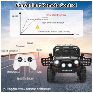 Carro Elétrico Infantil a Bateria 12V com Luzes LED Buzina. MP3 e Suspensão de Mola HONEY JOY Preto