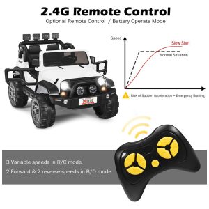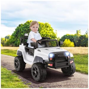 Carro Elétrico Infantil a Bateria 12V com Luzes LED Buzina. MP3 e Suspensão de Mola HONEY JOY Branco