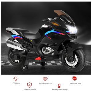 Moto Elétrica Infantil a Bateria 12V com Rodas de Treinamento e Luz LED HONEY JOY Preta