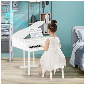 Piano Clássico Infantil de Cauda e 3 Pernas com 30 Teclas e Suporte para Partitura HONEY JOY Branco