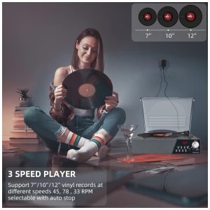 Vitrola Toca Discos Retrô 3 Velocidades com Bluetooth e Alto Falantes Embutidos 110v HONGUT Marrom