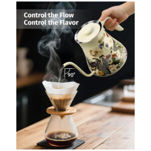 Chaleira Elétrica Pescoço de Ganso 08L INFOOD Floral Controle Preciso de Temperatura Agendamento Inox Desligamento Automático 1200W 110V