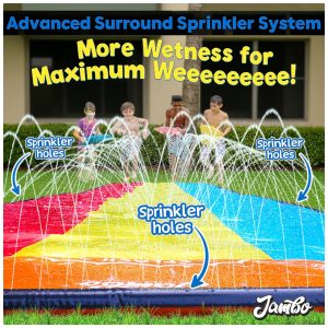 Parque Aquático Inflável 6 Metros com 3 Bodyboards e Sistema de Aspersão de Água de 3 Vias para Crianças Jambo Colorido