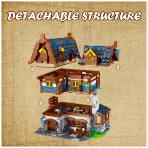 Kit de Construção Taverna Medieval Criativa com 3451 Peças JMBricklayer Marrom