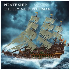 Kit de Construção Navio Fantasma Flying Dutchman com Luzes e 1100 Peças JMBricklayer Preto e Verde