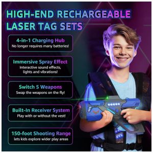 Pistola Infantil com Laser Infravermelho e Colete Recarregáveis para 4 Jogadores Idade de 8 a 12 Anos JakMean