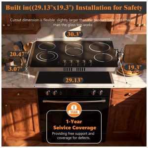 Cooktop elétrico vitrocerâmico 91cm 5 zonas Jessier 8400W comando por manípulos vidro temperado 220V