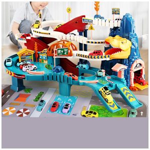 Pista de Corrida com 12 Mini Carros e Tema de Dinossauros para Crianças Acima de 3 Anos Juqic Colorida