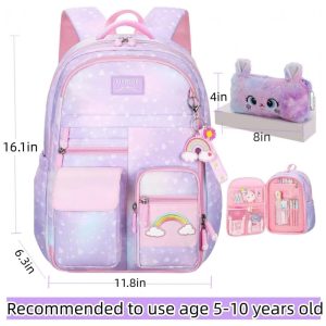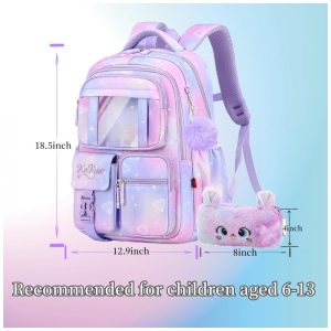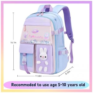 Mochila escolar infantil kistou coelho kawaii oxford impermeável grande capacidade roxa