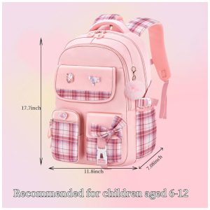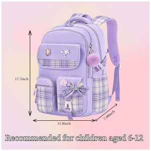 Mochila escolar infantil kistou quadriculada com laço oxford impermeável grande capacidade roxa