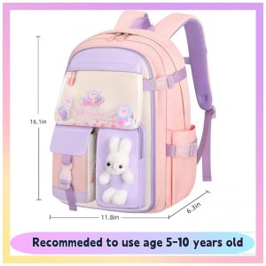 Mochila escolar infantil kistou coelho kawaii oxford impermeável grande capacidade rosa