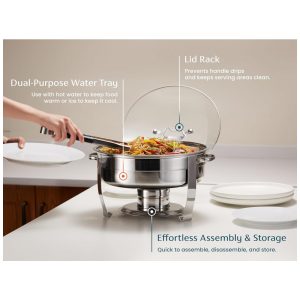 Rechaud Redondo 4 L em Aço Inoxidável com Tampa de Vidro e Suporte de Tampa Embutido KooK
