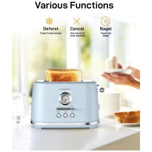 Torradeira 2 Fatias com Desligamento Automático Bandeja de Migalhas e 6 Níveis de Tostagem 110V 1000W LONGDEEM Azul