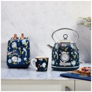 Chaleira Elétrica Laura Ashley 17L Inox Azul Marinho com Estampa Floral Elveden Termômetro Externo Filtro Removível Dome VQ-SBPKK336-LAEN-US 1500W 110V