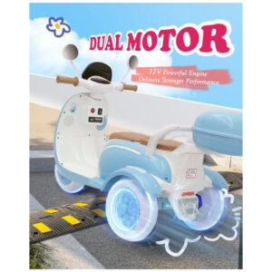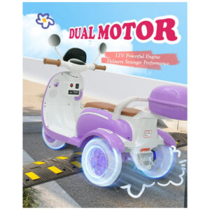 Moto Elétrica Infantil Letsgoride 12V Roxa 2 Lugares 3 Rodas Baú Musical Bluetooth LED Buzina 2x50W