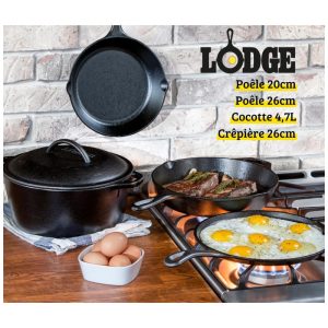 Conjunto de Panelas de Ferro Pré Preparadas 5 Peças LODGE L5HS3KPLT Preto
