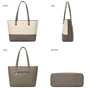 Conjunto de Bolsas Femininas em Couro Sintético 4 Peças com Carteira Lovematch Bege e Cinza