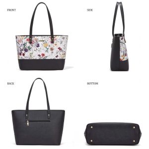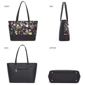 Conjunto de Bolsas Femininas em Couro Sintético 4 Peças com Carteira Lovematch Preto Florido