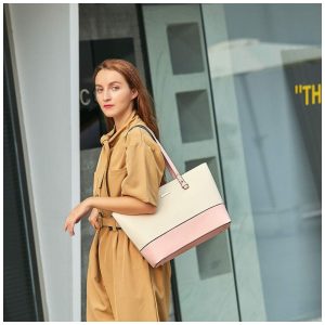 Conjunto de Bolsas Femininas em Couro Sintético 4 Peças com Carteira Lovematch Rosa e Bege