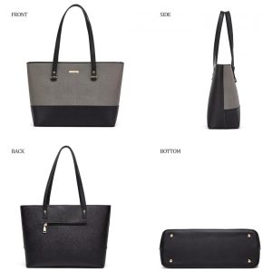 Conjunto de Bolsas Femininas em Couro Sintético 4 Peças com Carteira Lovematch Preto e Cinza Escuro