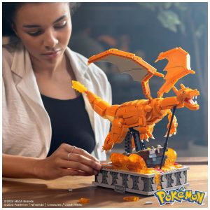 Kit de construção MEGA Pokémon Motion Charizard 1664 peças com movimento de asas para exposição