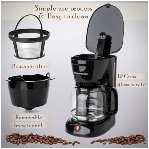 Máquina de Café Elétrica Mixpresso 12 xícaras Com Desligamento Automático Filtro Reutilizável Jarra de Vidro Borossilicato Janela de Nível de Água