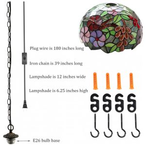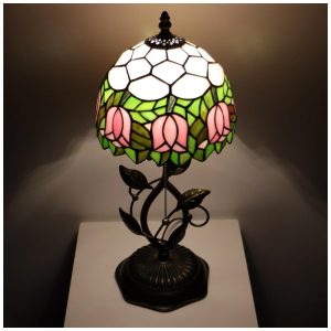 MQYXH Luminária Tiffany Suspensa com Vidro Colorido Tulipa Rosa – Vintage 30cm x 30cm x 470cm