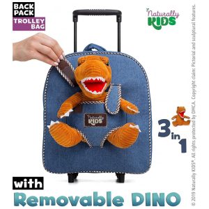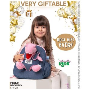 Mochila infantil rosa dinossauro Triceratops Naturally KIDS com pelúcia removível 29 cm