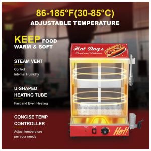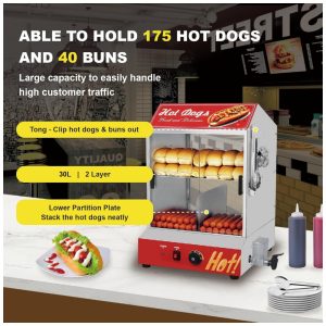 Máquina de Vapor para Cachorro-Quente de 2 Andares 40L com Aquecedor de Pães Temperatura Ajustável Porta de Vidro Deslizante Nessxa