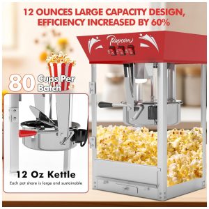 Máquina de Pipoca Comercial Panela de 340g em Aço Inoxidável com Vidro Temperado Deck de Aquecimento 900W Pipoqueira de Bancada para FestasNyddle