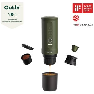 Mini Máquina de Café Expresso Portátil 80mL 12V Outin Verde