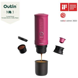 Mini Máquina de Café Expresso Portátil 80mL 12V Outin Rosa