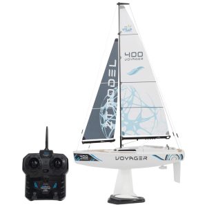 Veleiro de Controle Remoto para Adultos Tamanho 67 cm com Controle de 2 Canais PLAYSTEAM Voyager400 Branco e Azul