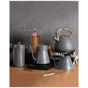 Poliviar Tea Kettle 2.7 Quart Natural Stone Finish with Wood Pattern Handle Loud Whistle Food Grade Stainless Steel Teapot Anti Hot Handle and Anti Rust Suitable for All Heat Sources JX2018 GR20