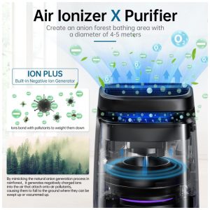 Purificador de Ar 4 em 1 com Filtro HEPA H13 Gerador de Ions Negativos e Ionizador de AR 110V POMORON MJ002H Preto