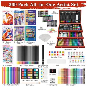 Kit Lápis de Cor Profissional com Maleta de Madeira 185 peças e 2 Livros de Esboço POPYOLA Marrom