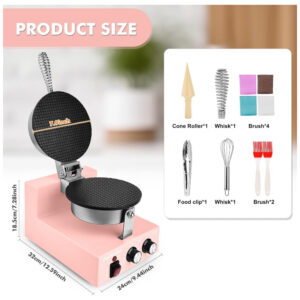 Máquina para Casquinha de Sorvete Comercial POPFOODEX Preto Placa Antiaderente 20 cm 1200W 120V
